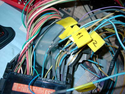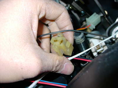 現車のコネクターに端子を挿し込みます。 またもともとの配線からもコンピュータへつなぎますので、エレクトロタップで分岐して接続します。 |